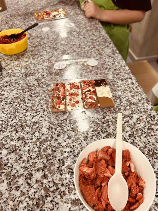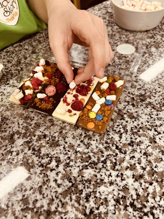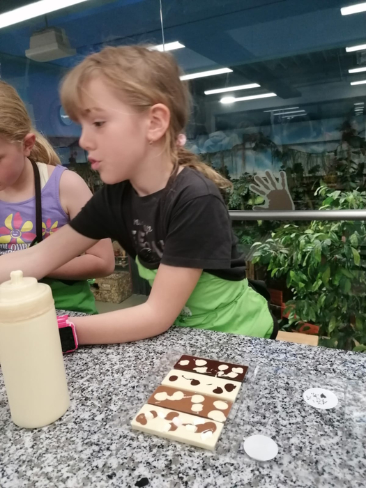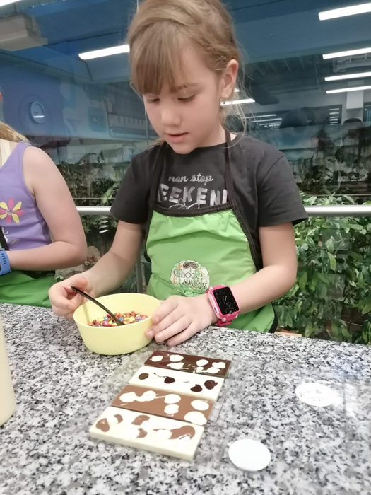 Na závěr si děti vytvořily vlastní originální čokolády na čokoládovém workshopu – podle své fantazie a chuti!